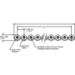 Plochý kabel pro samořezné svorky s RM 1,27 mm. Průřez žíly AWG 28 se 7 lanky. Kabel je vyroben z barevné PVC izolace.
