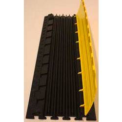 Kabelový můstek SLIM, kompaktní, velmi lehký a pojízdný kabelový můstek vybavený 6 kanály, naplňuje všechny požadavky na profesionální ochranu kabelu na co nejmenším prostoru, sklouzávané víko zůstává při vedení kabelu svislé a lze jej rychle a jednoduše bezpečně uzamknout pomocí integrovaného systému zipu, šestiúhelníku, zatížitelnost: Cca 2 t na plochu 20 x 20 cm, oleji, odolná proti kyselinám a benzínu, rozměry: D x Š x v = 1000 x 280 x 32 mm, průměr kanálu: 18 mm, pracovní rozsah: -30°C až +60°C, třída ochrany proti plameni: B2, materiál: Černý polyuretan, materiál horní díl: Polyetylen, výstražná barva žlutá,
