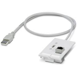 Front plate with contact inserts, plastic with shroud, 1 x USB (socket/socket/0.7 m cable) type A; 1 x RJ45, 8-pos. metal, CAT5e (socket/socket)