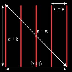 Optický prvek typu (DOE) je optika pro projekci 5 čtvercových linií. Na vzdálenost 100 mm od DOE k projekční ploše mají čáry vzdálenost a celkovou délku . U vlnové délky 633 nm se úhel otevření rovná , který je mezi dvěma čarami. Pro použití lze použít jakýkoliv bodový laser.