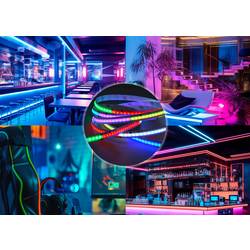 Sygonix COB Digital RGB LED pás spojuje výhody nového designu COB a pomocí otočení hustých LED. Výsledkem je vyšší světelný výkon a ESD stabilita a lepší odvod tepla při odolné mechanice a trvale vysoká životnost. LED diody připevněné přímo na desce PCB odvádí vznikající teplo extrémně rychle a umožňují životnost až 30.000 hodin.