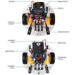 Senzory jako senzory Line Tracking, ultrazvuk, infračervené a otáčky kol umožňují funkce jako je autonomní řízení a dokonce ovládání přes BT pomocí druhého, samostatného micro:bit. Dodatečné vybavení simuluje směrová světla, světlo, zpětné světlo a klakson