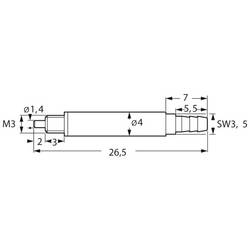 Miniaturní válec typ Kuhnke 40.100. V mikroprovedení, s průměrem pístu 3,0 mm, jednoduchým účinkem; provozní tlak: 3,0 až 10 bar, zdvih: 6,0 mm, materiál válcové trubky: Mosaz, médium: Medium: Stlačený vzduch, upevnění: Šroubové upevnění M 3 na pístnici, připojení tlakového zařízení: Hadicová koncovka pro hadice 4 x 1, okolní teplota: –10 až +70 °C. Typ: 40.100, Miniaturní válec